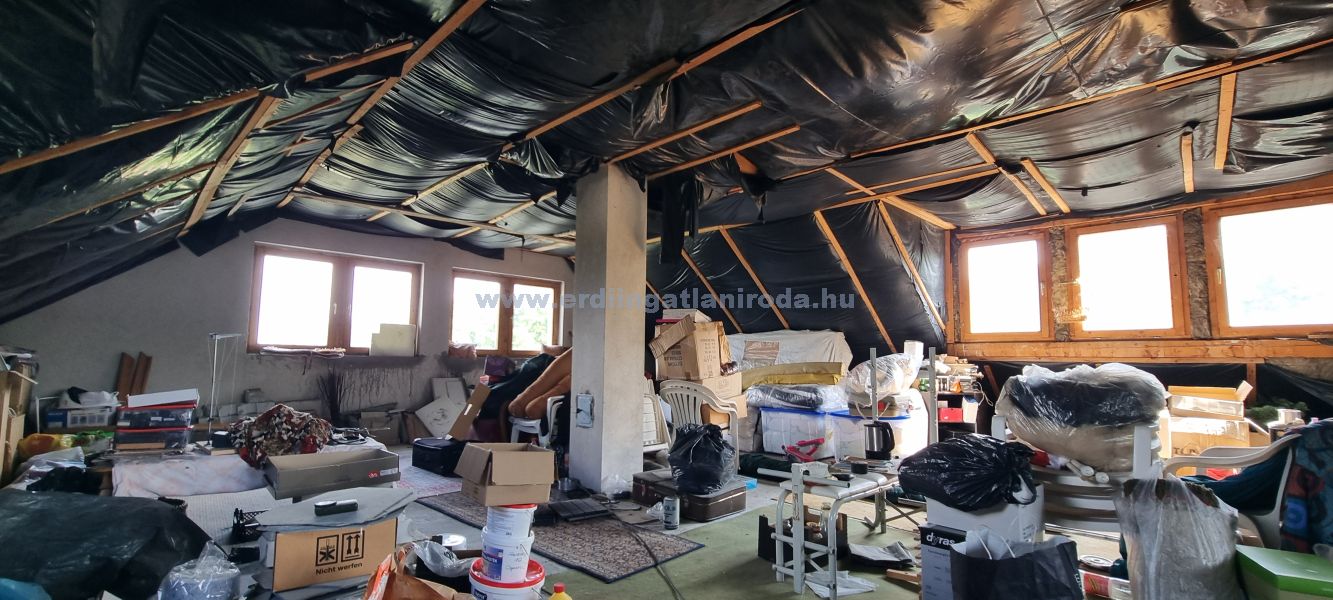 A tetőtérben ~110 m2 hasznos lakóterület kialakítható, a ház gépészeti rendszerére a rácsatlakozási lehetőség adott és a külső nyílászárók is beépítésre kerültek.