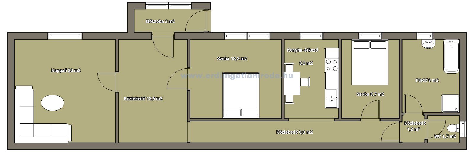 | Belső kialakítás | konyha, előszoba, közlekedő |