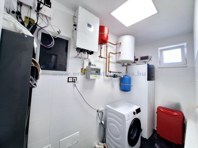 A ház 30-as téglából épült, amit 15 cm-es polisztirolszigeteléssel burkolnak körbe, a BETONFÖDÉMre 20cm szigetelés került, a tetőre betoncserép. A külső nyílászárók műanyag ajtók és ablakok 3 rétegű üvegezéssel, bukó-nyíló kivitelben ELEKTROMOS ANTRACIT REDŐNNYEL ÉS SZÚNYÁLÓVAL ELLÁTVA. A fűtés és meleg vízellátás HŐSZIVATTYÚRÓL működő PADLÓFŰTÉSSEL+8 KW-os NAPELEMRENDSZERREL üzemel. A nappaliban és egy hálószobában 2 db DAIKIN KLÍMA került felszerelésre. A nappaliban ELEKTROMOS KANDALLÓ teszi hangulatosabbá az estéket. Az ingatlanban RIASZTÓ ÉS KAMERARENDSZER kiépítésre került.