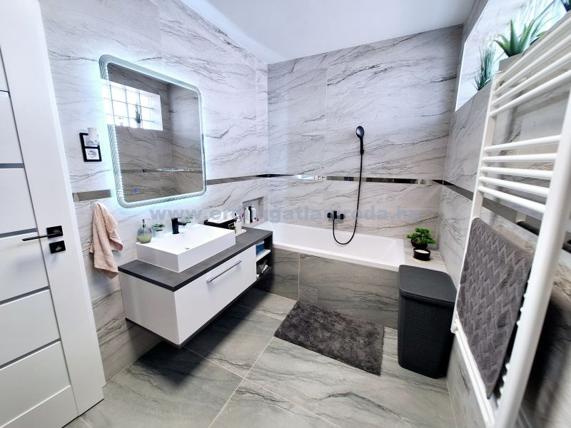 Érden városközponthoz közelében , 639nm összközműves telken , nettó 77 nm lakóterületű 2+félszobás duplakomfortos önálló családiház + 10,11nm beépített terasszal ,pincével ,...