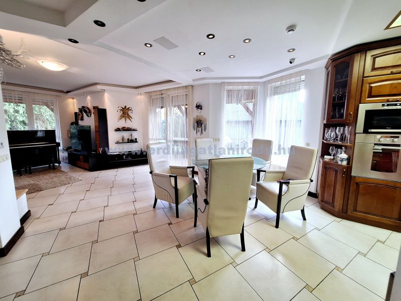 Érdligeten a városközpont közelében, átmenő forgalomtól mentes csendes családi házas környezetben, csodálatosan parkosított 1095 nm-es díszkertben, nettó 170nm lakóterületű családi...