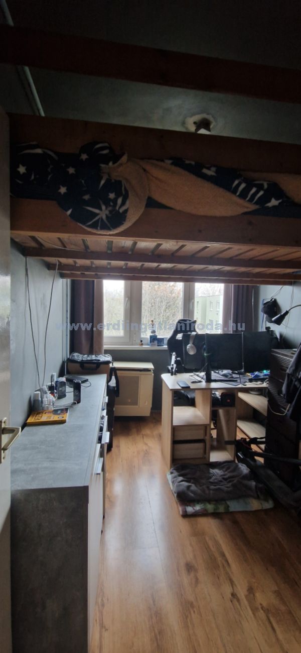 A nappaliban/hálószobában egy egész fal mentén (4 méter hosszú 55 cm mély) részben tükörrel ellátott, minőségi gardrob kapott helyett.