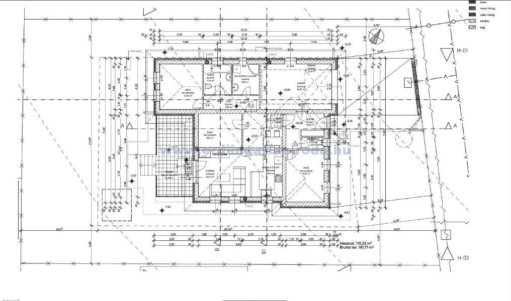 Alap műszaki adatok : Beton sávalap, 30-as tégla főfalak + 15cm külső hőszigetelés. Szigetelt fa födémes, Bramac cserép fedéssel . A külső nyílászárók műanyag szerkezetű , 3 rétegű fokozott hőszigetelt üvegezéssel ellátva, bukó-nyíló, bukó és fix kivitelben. A beltéri nyílászárók fa szerkezetű ajtók .