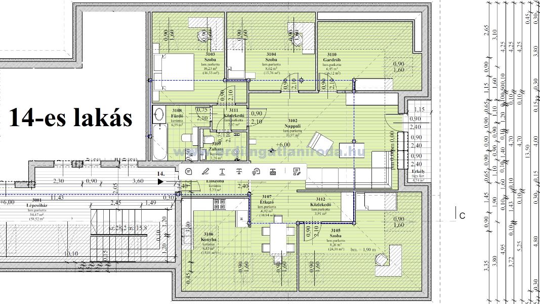 | Belső kialakítás | erkély, amerikai konyha, előszoba, közlekedő, légkondicionálás |