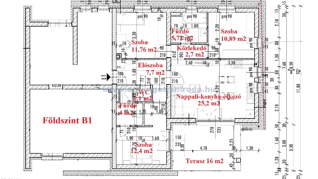 B4-es lakás. 2 szoba + nappali, 57,84 m2 (+13,1 m2 erkély). 75,9 Millió Ft (+ garázs 3 Millió vagy nyílt parkoló 2 Millió)