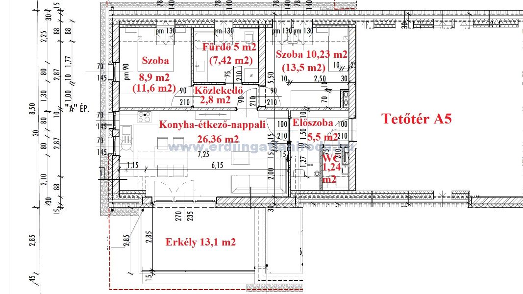 A5-ös lakás. 2 szoba + nappali, nettó: 59,95 m2 bruttó: 68,5 m2 (+ 13,1 m2 erkély). 79,9 Millió Ft (+ garázs 3 Millió vagy nyílt parkoló 2 Millió + Tároló 2 Millió)