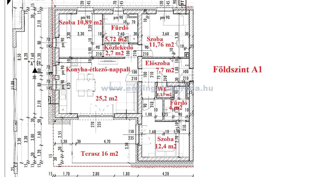 A1-es lakás. 3 szoba + nappali, 81,4 m2 (+ 16 m2 terasz), kertkapcsolat ~50 m2. 99,9 Millió Ft (+ kert 5 Millió + garázs 3 Millió vagy nyílt parkoló 2 Millió)