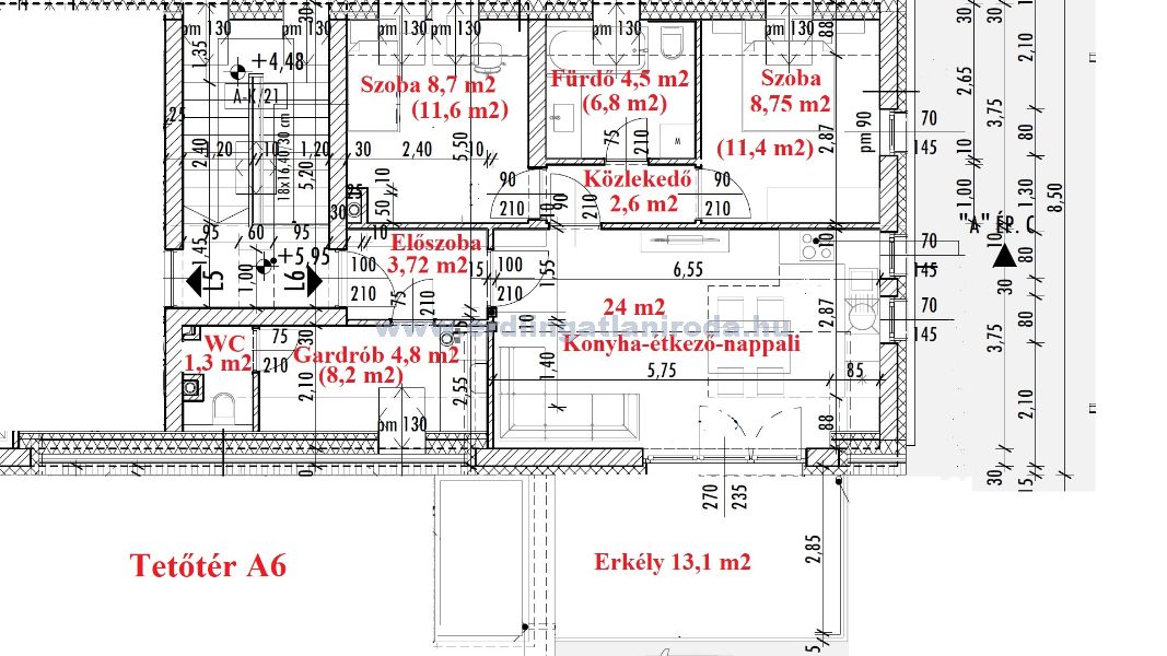 A6-os lakás. 2 szoba + nappali, nettó: 58,23 m2 bruttó: 69,6 m2 (+ 13,1 m2 erkély). 79,9 Millió Ft (+ garázs 3 Millió vagy nyílt parkoló 2 Millió + Tároló 2 Millió)