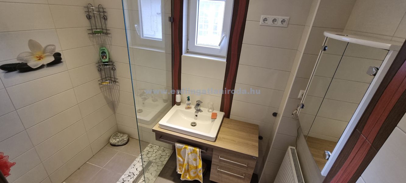 A külső hőszigetelésen kívül belső felújítást is végeztek az ingatlanban. A villany hálózatot felújították, 2x25A bejövő áramerőség (nappali és vezérelt áram), érintésvédelmi relével felszerelve. A fürdőszoba is teljes átépítésen esett át. A konyhába új bútor készült.