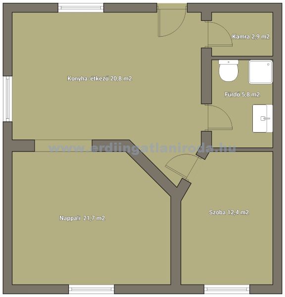 | Burkolat | laminált padló, járólap |