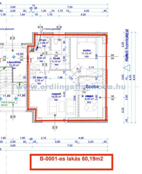 Első em. B-0001 lakás 60,19m2 lakóterület + tároló + parkoló