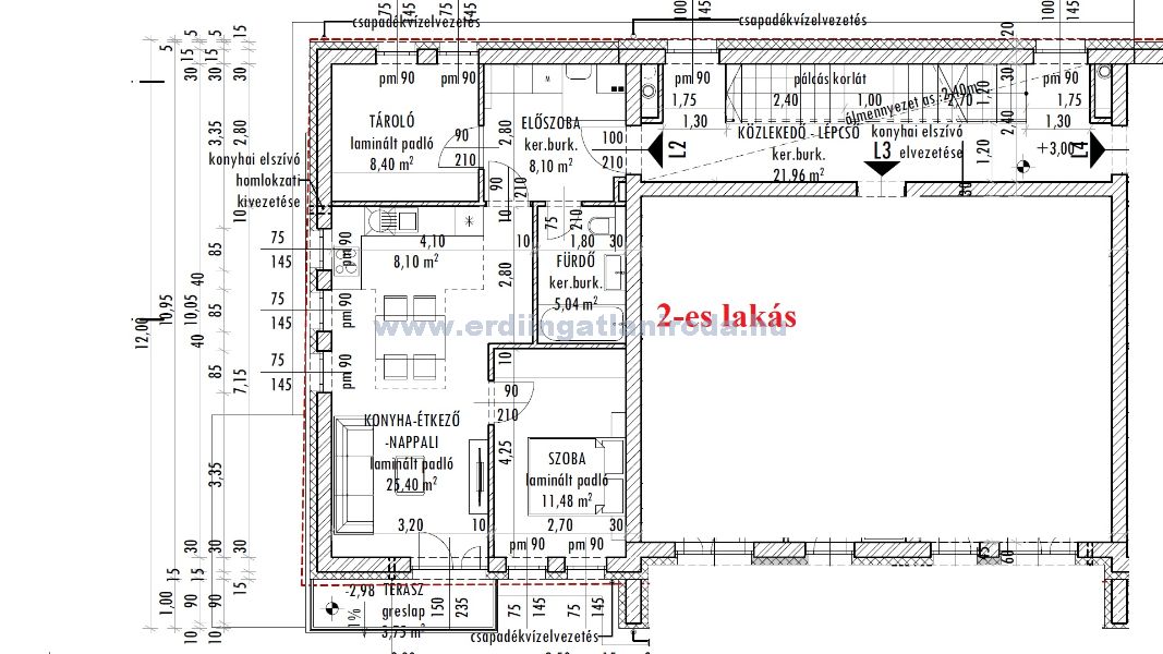 4-es lakás. 2 szoba + nappali, 58,42 m2 (+3,75 m2 erkély). 75,9 Millió Ft (+ garázs 3 Millió vagy nyílt