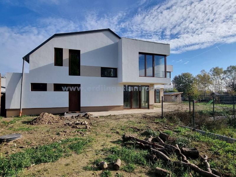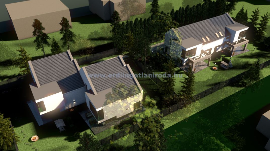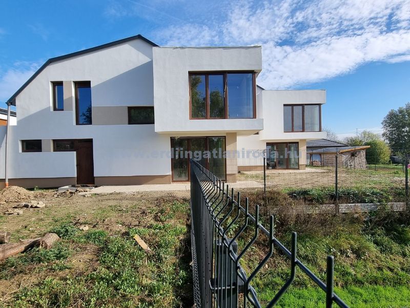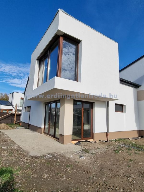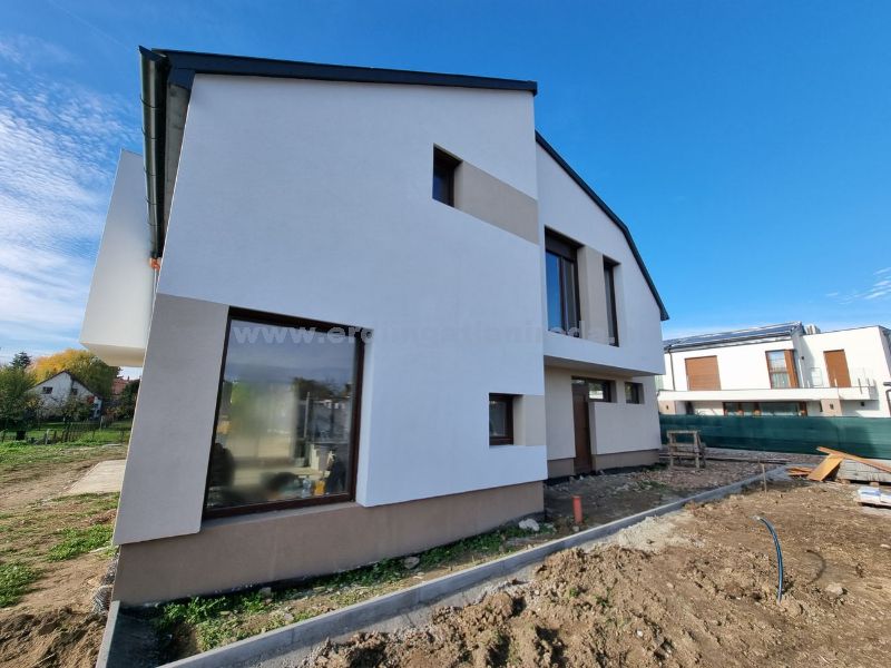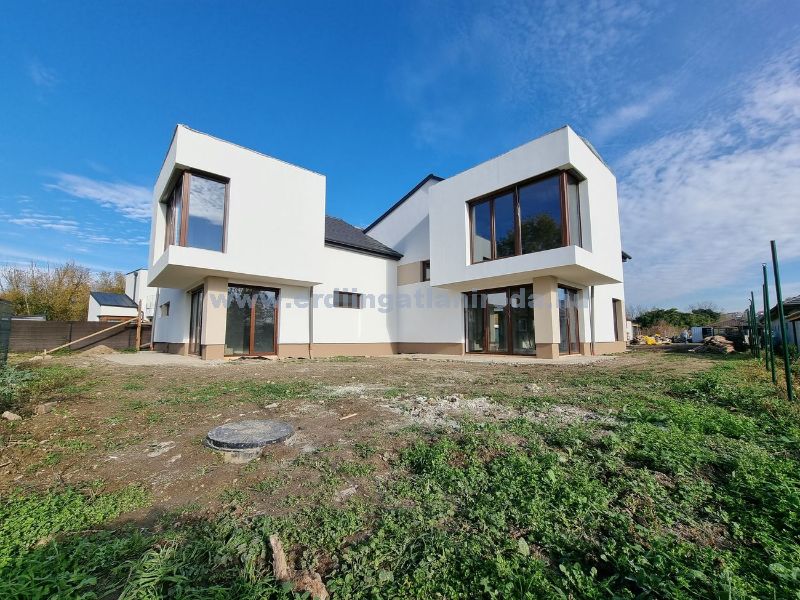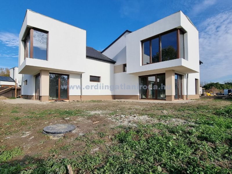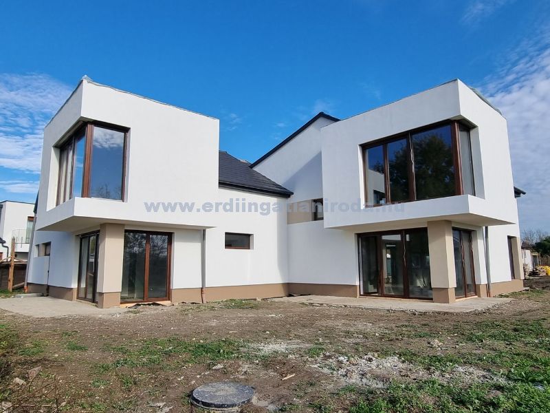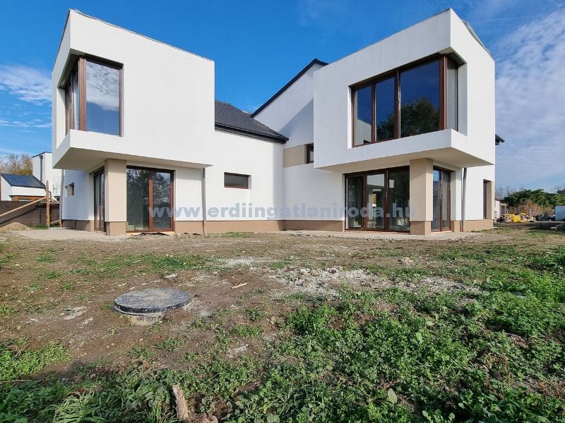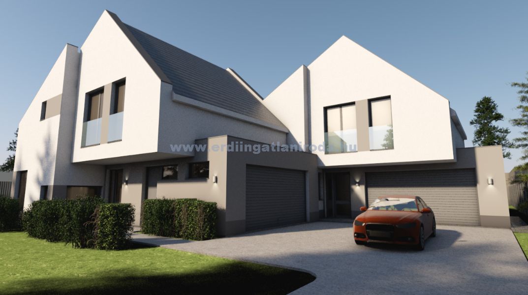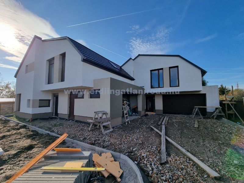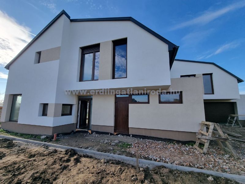 Diósd csendes jelenleg is dinamikusan fejlődő részén, új építésű házak között, 810 m2-es saját lekerített telekkel rendelkező, ÚJ, 2 szintes, duplakomfortos, 2x162 m2 (amelyből hasznos lakóterület 2x144 m2 + 2x18 m2 terasz), 2x3 szoba + nappali-konyha-étkező, két fürdőszoba, gardrób, garázs helyiségekből álló modern stílusú ikerház (a két fél között a földszinten garázsoknál az emeleten teherhordó hanggátló Silka falazattal találkoznak a lakások) EGYBEN, JELENLEGI 70 %-os KÉSZÜLTSÉGBEN eladó.