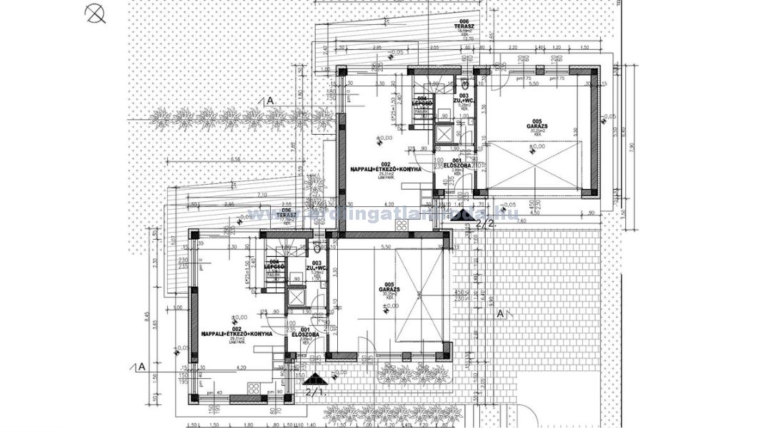 A földszint 2x72 m2 hasznos lakóterülettel + 2x18 m2-es terasszal rendelkezik.