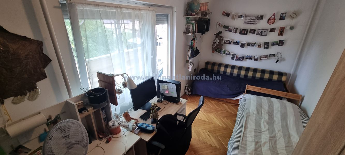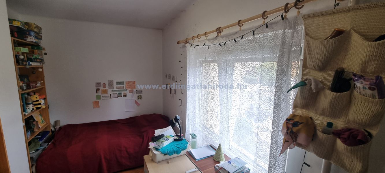 Az emelet (NEM TETŐTÉR) 37 m2 + 9 m2 erkély, közlekedő folyosóról nyílóan 2 hálószoba (mindegyik 12,5 m2), valamint fürdőszoba-WC került kialakításra. A délnyugati tájolású erkélykapcsolatos szobában klímaberendezés is felszerelésre került.