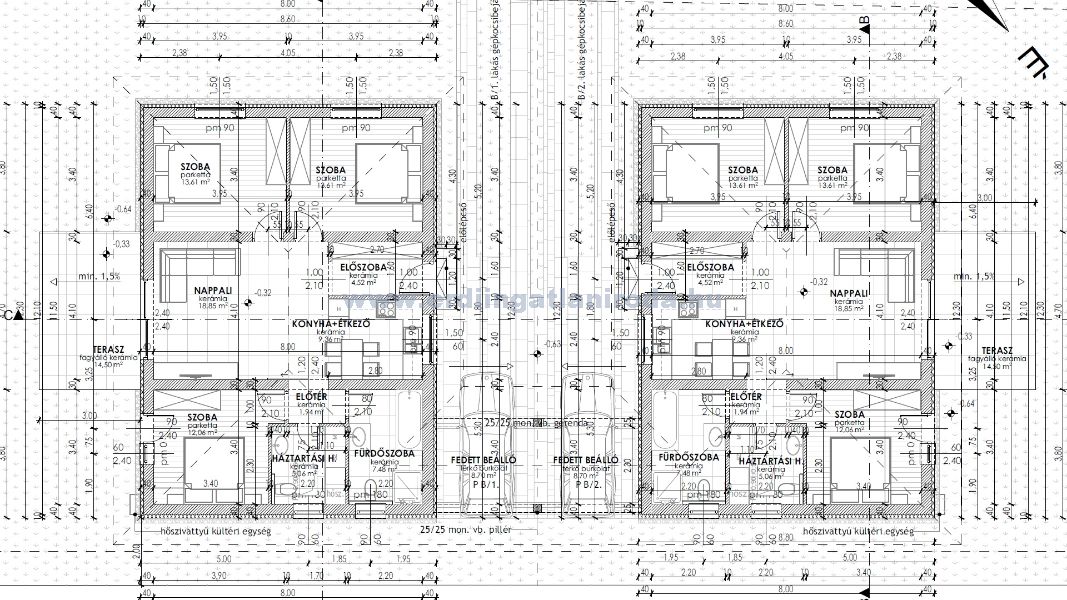 A ház minőségi anyagok felhasználásával, precíz munkával és nagy odafigyeléssel épül. A tartószerkezet vasalt sávalapra 30-as hőszigetelő téglából épül.