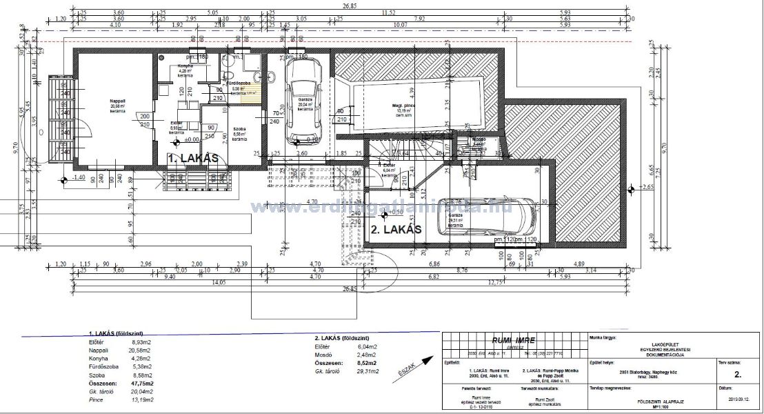 Érden városközponthoz közelében , 639nm összközműves telken , nettó 77 nm lakóterületű 2+félszobás duplakomfortos önálló családiház + 10,11nm beépített terasszal ,pincével ,...