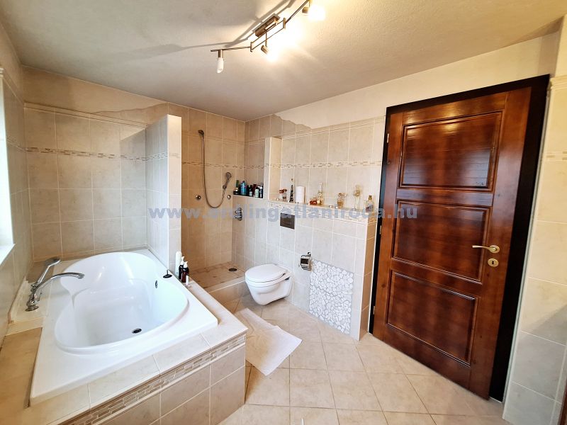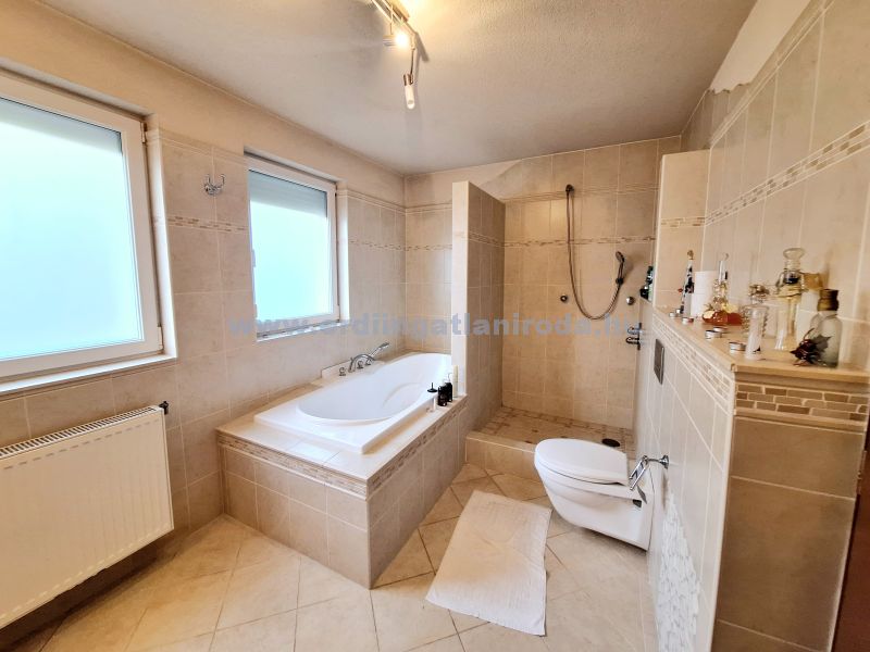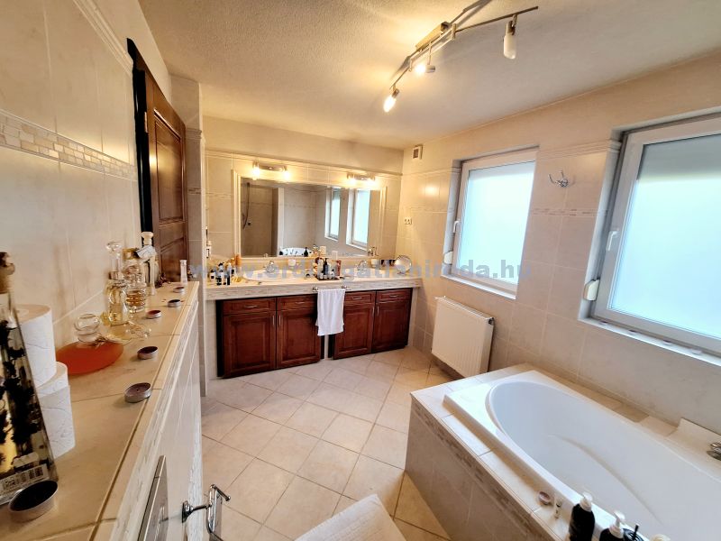 Az ingatlan 2004-ben épült, de felszereltsége mostani elvárásoknak is megfelel. A vizeshelyiségekben beépített Geberit WC, falsík alatti zuhany. KAMERA és szekcionált RIASZTÓRENDSZER, tűzjelző. Nappaliban, hálóban REJTETT HANGULATVILÁGÍTÁS. 2 db hálószobához tartozik önálló 5 m2-es gardrób. A burkolatok, magas minőségű járólapok és fa parketta. A padlástér járható és pakolható.