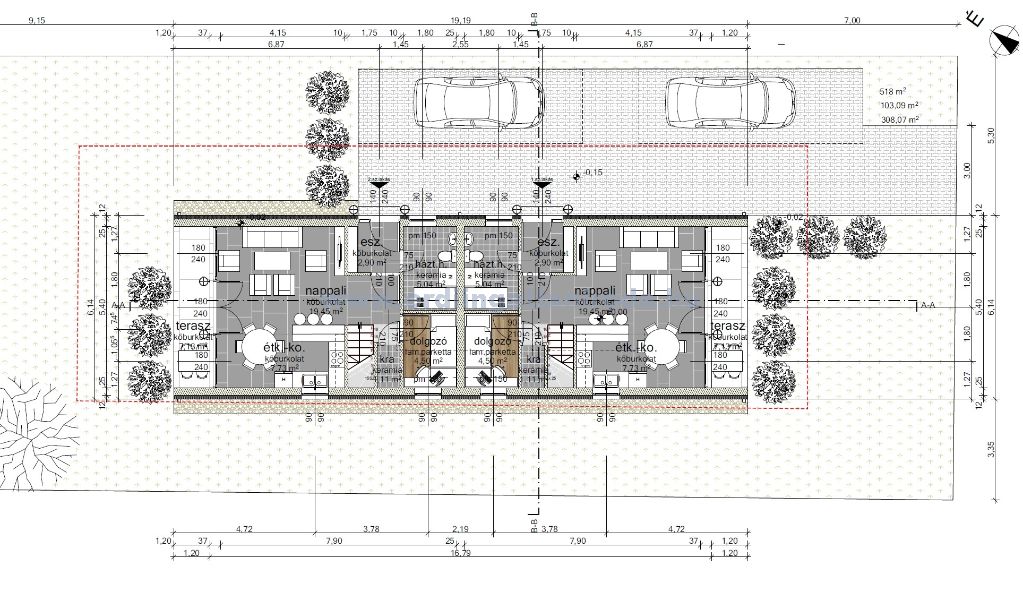Érd Parkváros kitűnő megközelíthetőséggel, közel "0" energiaigényű 3 lakásos sorház 120m2 hasznos lakóterületű 3 szoba+nappalis+GARÁZSOS, belső kétszintes, KÜLÖN UTCAFRONTI...