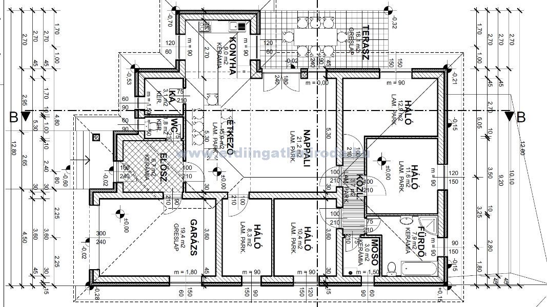 | Belső kialakítás | amerikai konyha, kamra, előszoba, közlekedő, háztartási helyiség, tároló, légkondicionálás, riasztó, redőny |